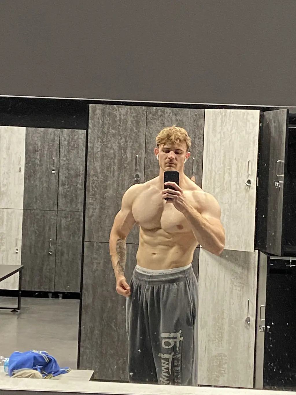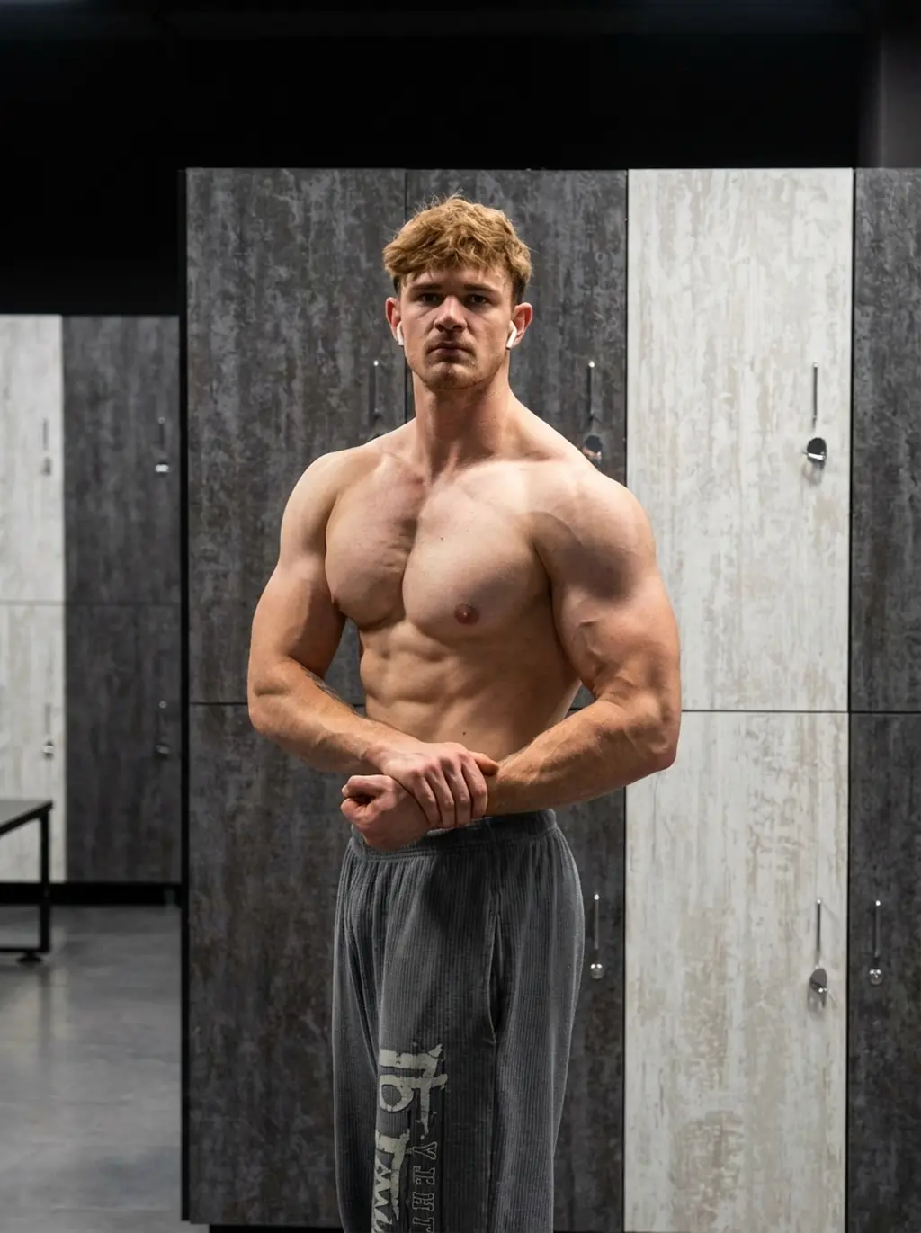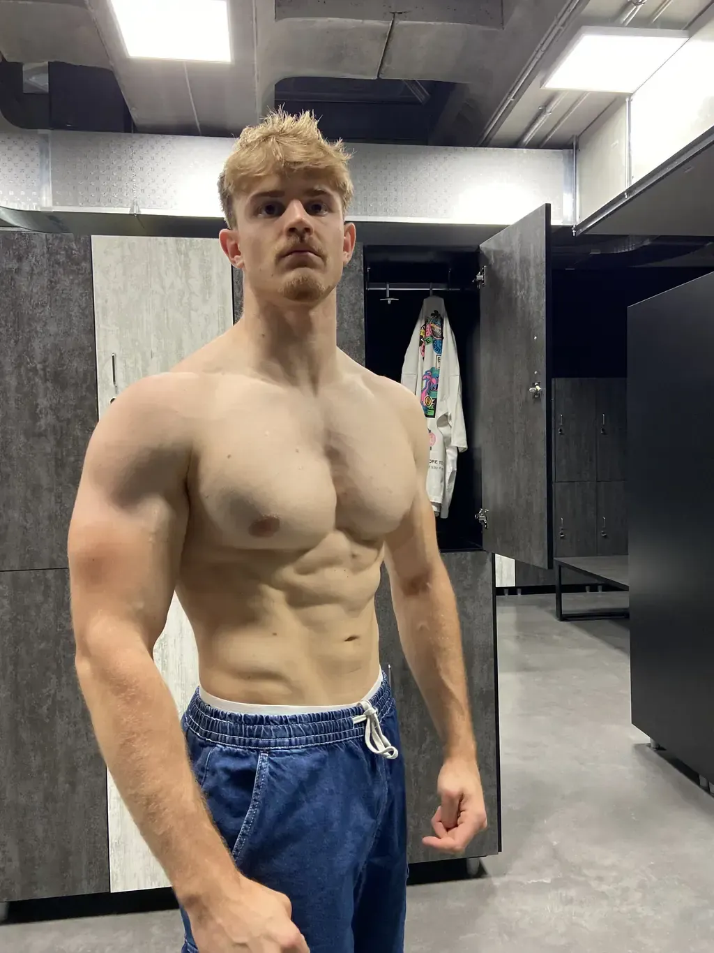 Il petto pieno e la schiena larga che riempe una maglietta.